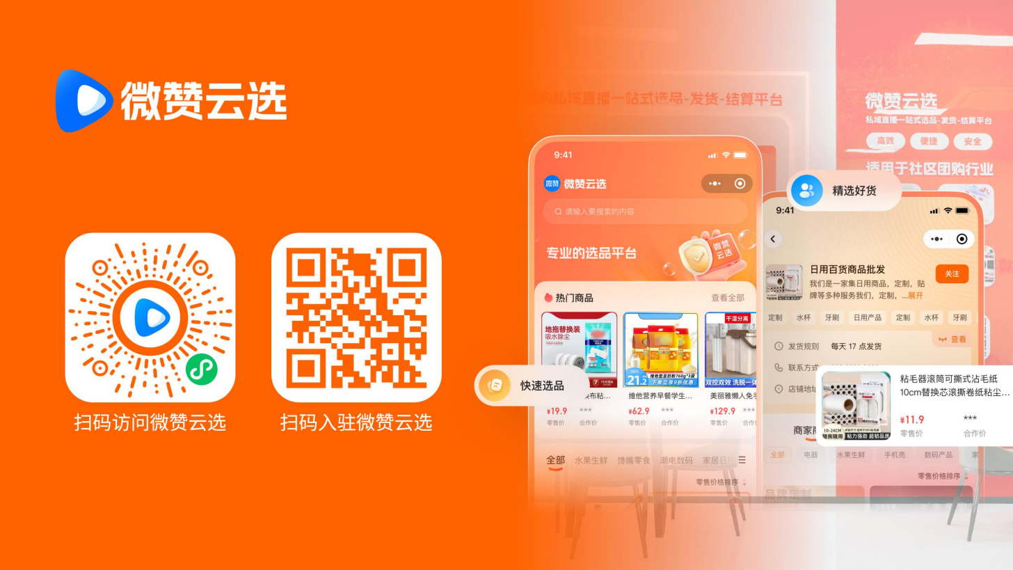 助力私域直播高效资源对接,微赞云选现已面向全国优质供应商、源头厂家开放入驻,下方扫码立即入驻~