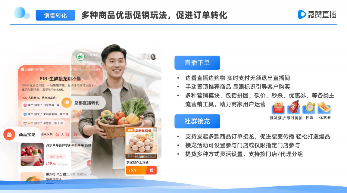 做好内部管理的同时,微赞 ERP 更自带营销工具,助力零售企业 “多卖货、卖好货”: