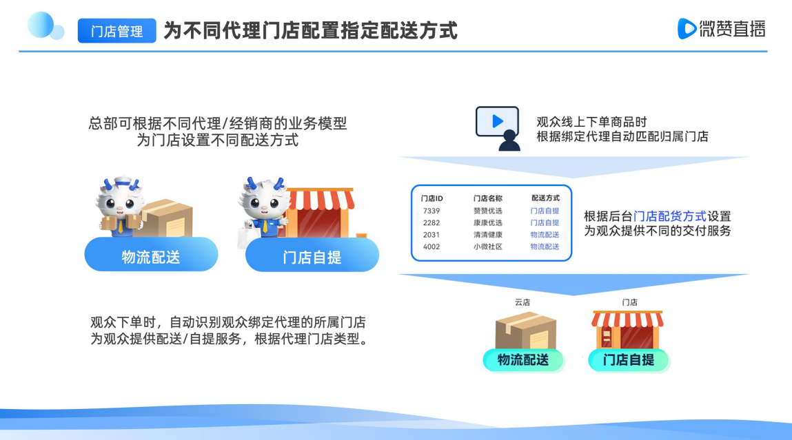 ○ 门店仓自提:门店作为提货站点,汇总辐射范围内订单商品,客户到店自提。