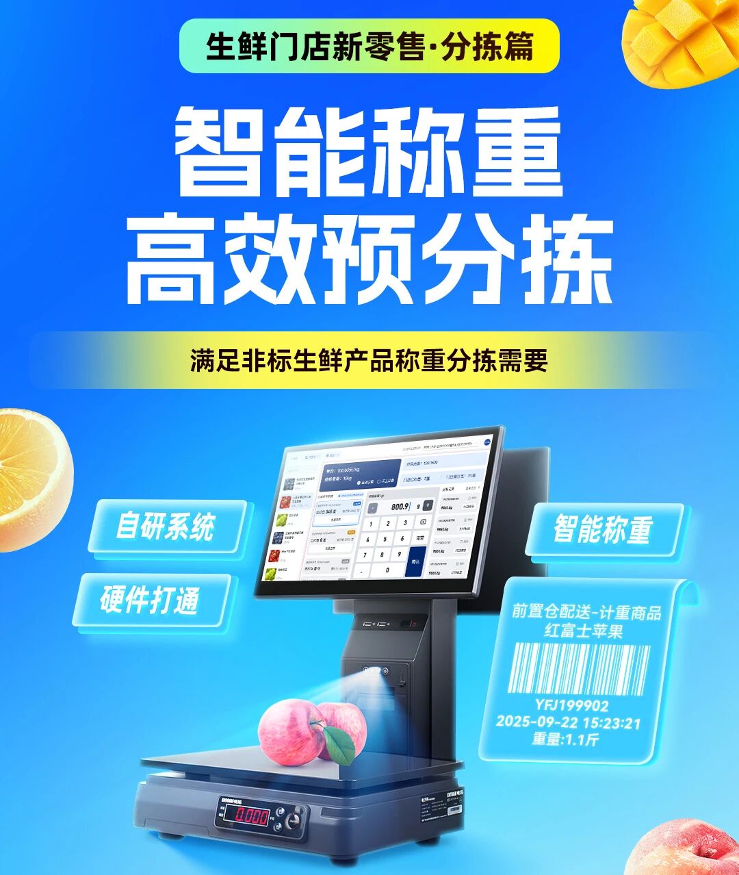 ✦ 智能称重:一放即识,自动打标