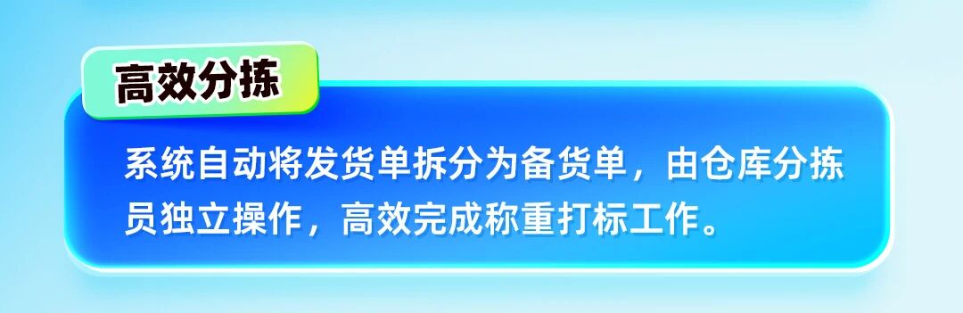 ✦ 高效预分拣:智能拆单,并行作业