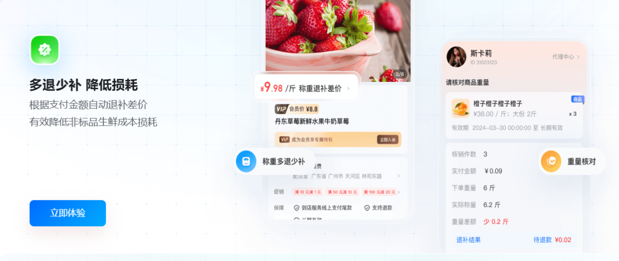 “按实重结算,自动多退少补”,不仅能将团长、门店从繁琐的差价解释与手动催款中解放出来,也能杜绝因此产生的交易纠纷,将售后成本转化为客户信任,提升复购率。