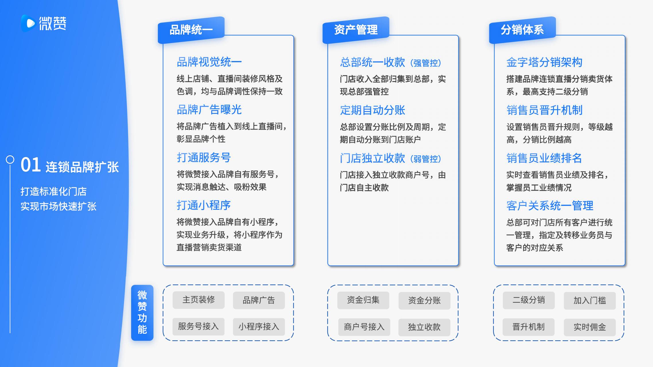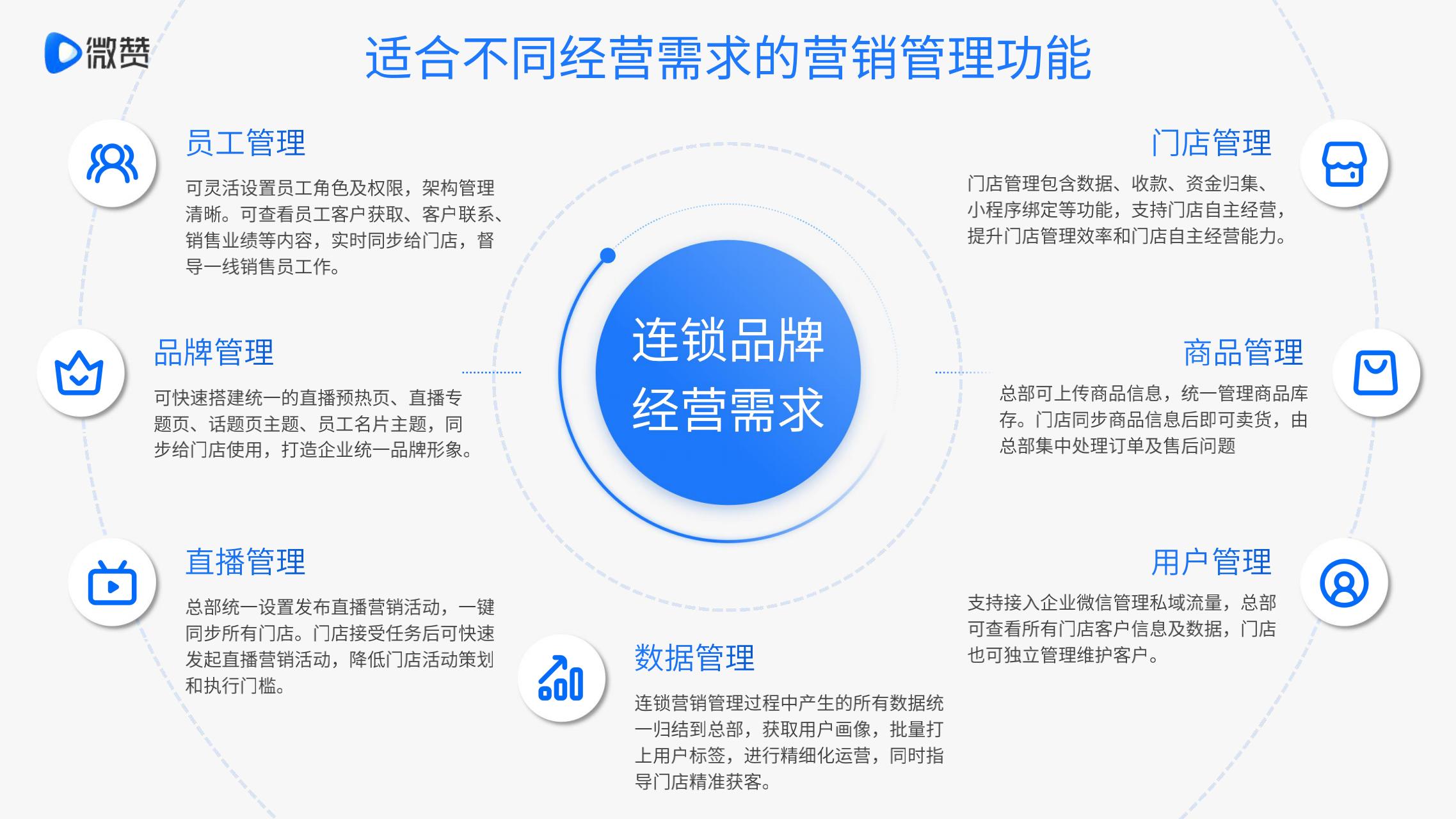 目前受到网络直播的影响,连锁品牌以往传统的获客营销卖货方式,同质化竞争日趋严重。门店缺乏营销运营能力,客户流失率高。优秀门店经营模式难以快速复制,市场扩张速度有限。连锁品牌可通过线上直播营销的方式,多渠道同步引流,精准获取销售线索,以低成本、高效率的方式开展直播营销管理。
