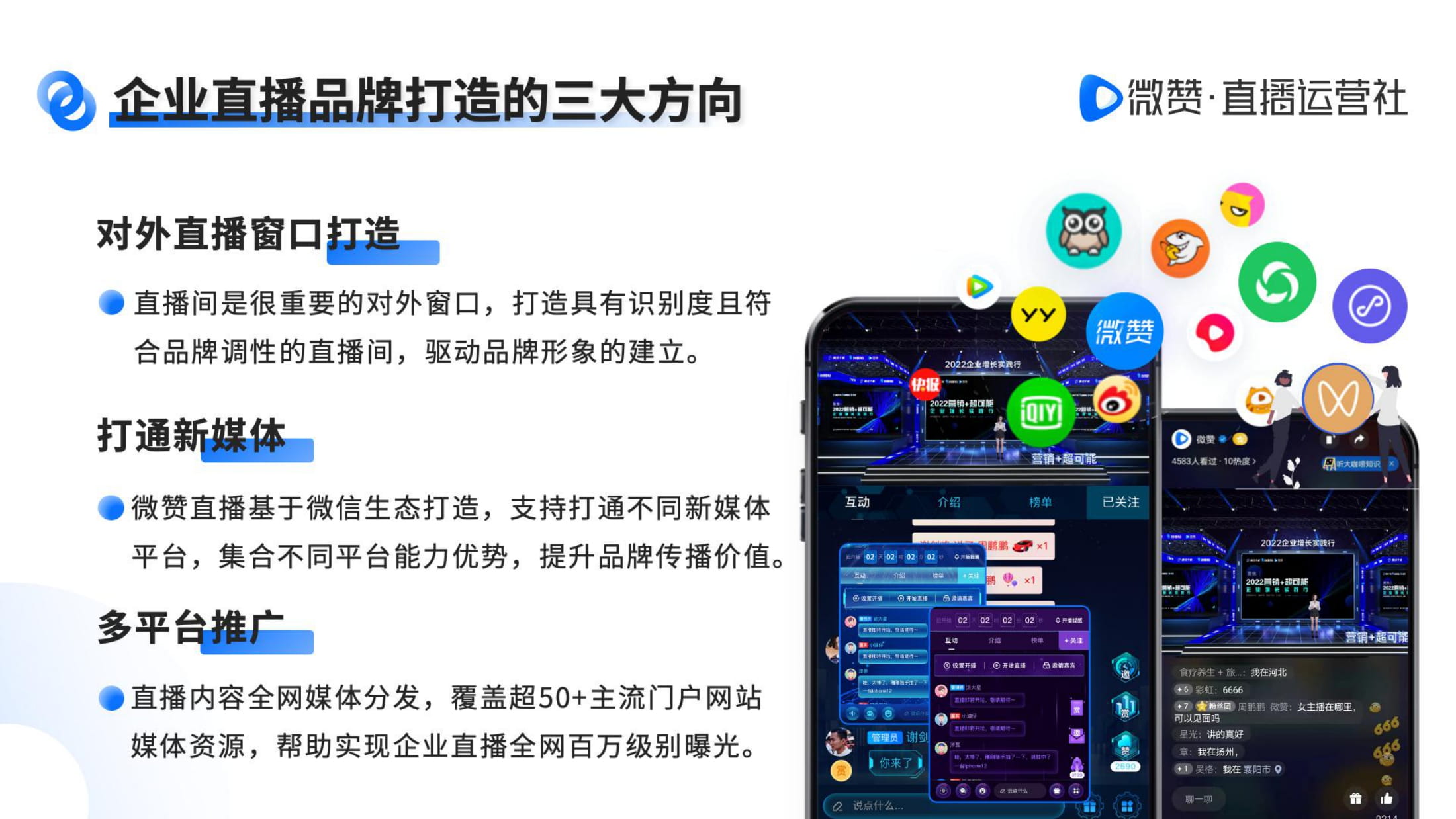 3、利用对外直播窗口打造直播品牌,并将企业的新媒体平台如公众号、视频号与微赞直播平台打通